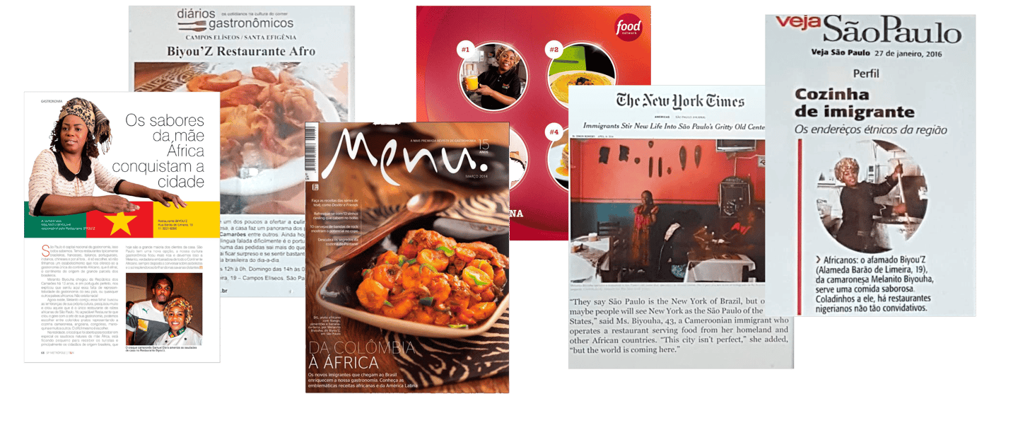 Ao chegar ao Brasil, a chefe de cozinha e artista camaronesa Melanito Biyouha percebeu a grande comunidade africana radicada no país e vislumbrou a oportunidade de abrir um restaurante que pudesse atender além de seus patrícios a grande gama de africanos de várias regiões daquele continente. Com muita dedicação começou a pesquisar as heranças gastronômicas de países como Angola, Nigéria, Senegal, Gana, República dos Camarões entre outros. Com um grande repertório de sabores e uma riqueza de cores e aromas, fundou o Biyou’Z em 2007 a primeira unidade (Campos Elísios) e a segunda (Consolação) no ano de 2020.