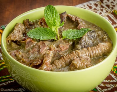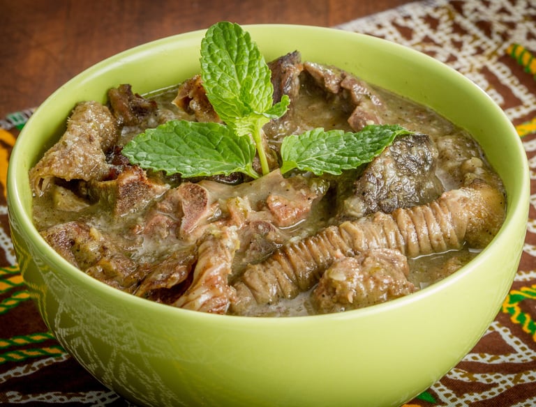Ensopado de miúdo de carne com azeite de dendê.