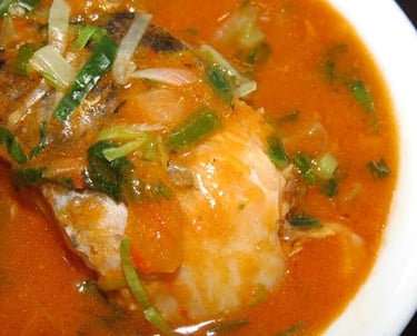 Bagre ensopado acompanhado de inhame ou arroz.