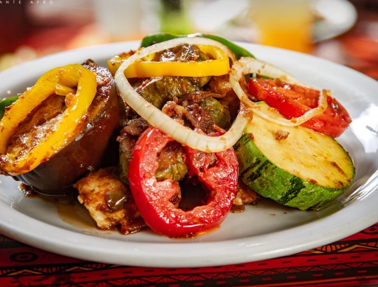 Nossos pratos vegetarianos celebram a diversidade do continente africano com combinações surpreendentes de legumes, grãos e especiarias típicas.